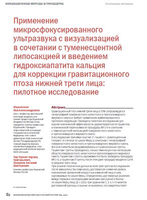 Опубликована статья преподавателей "Школы профессора Юцковской" Я.А.Юцковской, Э.Г.Тер Терьян, Е.В. Лешунова "Применение микрофокусированного ультразвука с визуализацией в сочетании с туменесцентной липосакцией и введением гидроксиапатита кальция для коррекции гравитационного птоза нижней трети лица: пилотное исследование"