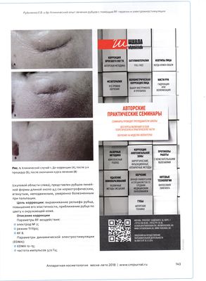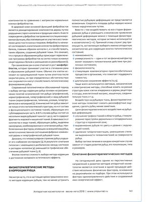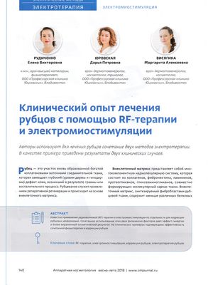Авторы - группа врачей "Профессорской клиники Юцковских" Рудиченко Е.В., Юровская Д.П., Висягина М.А. используют для лечения рубцов сочетание двух методов электротерапии. В статье описаны результаты двух клинических случаев.